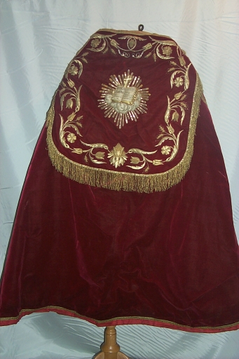 - soie, rouge velours uni, brodé, application sur textile, adjonction d'éléments