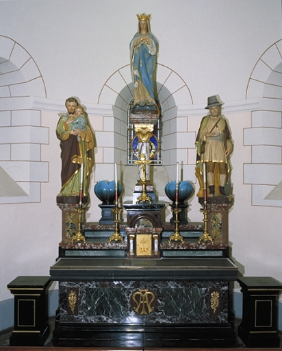 Ensemble de l'autel de la Vierge : autel, 2 gradins d'autel, tabernacle, degré d'autel,