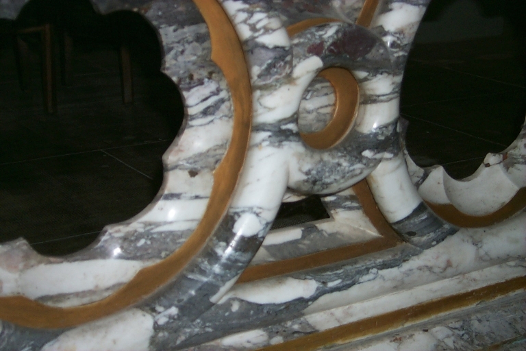 - marbre veiné, blanc mouluré, percé, poli, peint faux or