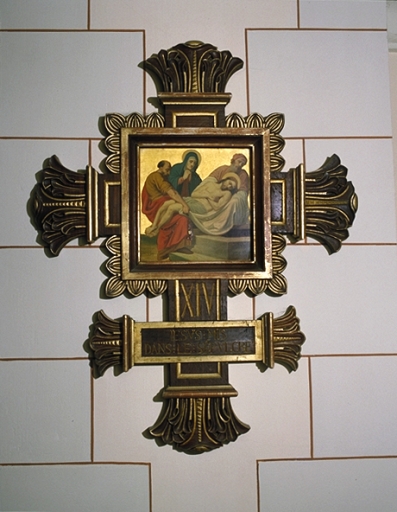 Le titre de chaque station est gravé et doré sous chaque scène.