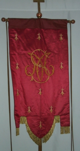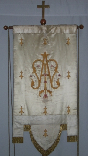 Paire de bannières de procession avec leurs hampes : saint Méen, Immaculée Conception,