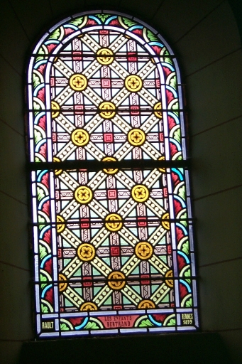 Ensemble de verrières décoratives réalisé par le maître-verrier rennais Rault en 1899 et offert à la paroisse par divers donateurs.