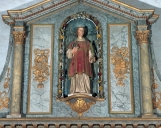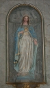 La peinture est sale. Quelques parties de bois arrachées. Les parties décoratives en pâte de riz sont abîmées : manque la tête de la Vierge ; la frise du tabernacle est abîmée. Sur les ailes du tabernacle, les figurines sont inversées.