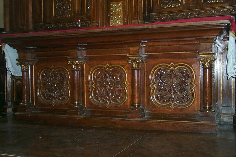 - Cet ensemble participe de l'homogénéité du mobilier de l'église, dont les pièces-maîtresses sont réalisées par le même atelier. Qualité d'exécution remarquable.