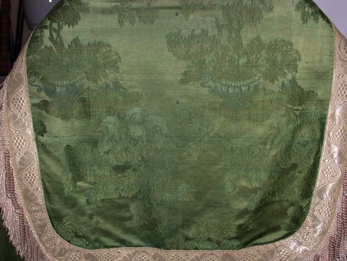 - soie, verte tissu façonné, application sur textile