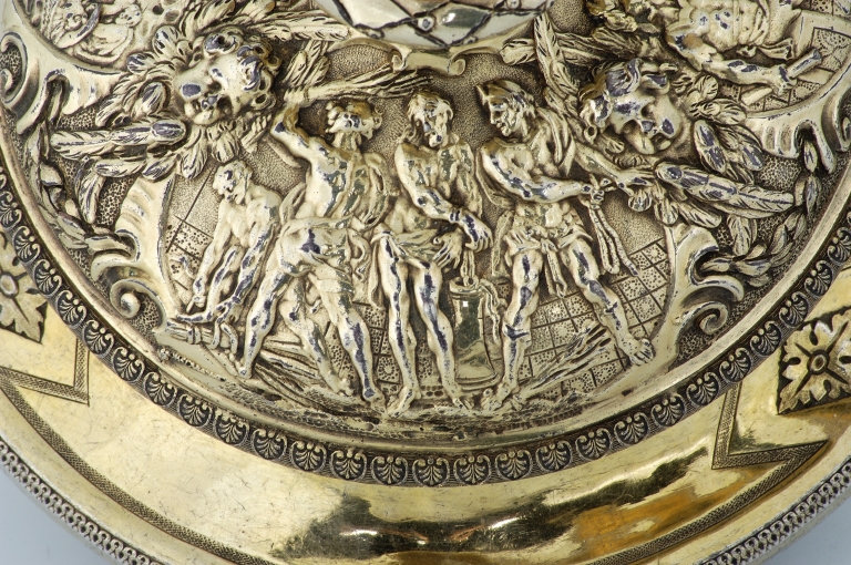 - argent, repoussé, ajouré, ciselé au trait, ciselé au mat, gravé, doré, décor à la molette, fondu