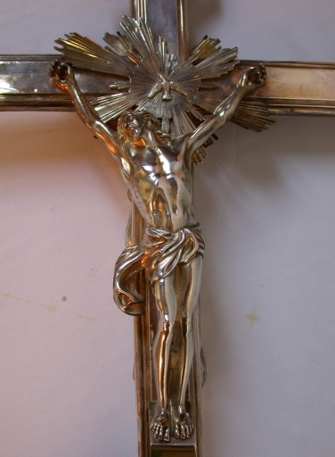 La croix de procession a été fabriquée par l'orfèvre parisien Louis Loque et donné par l'abbé Hamard à la paroisse. Le poinçon de fabricant permet de dater l'oeuvre entre 1821 et 1831.