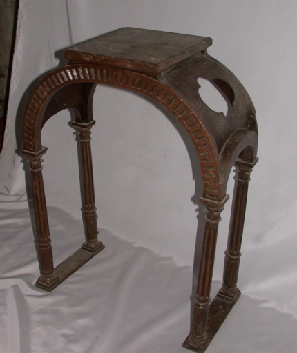 Exposition : bois : tourné, mouluré, découpé, cannelé, décor dans la masse, décor en demi relief ; 70 h. Oeuvre déposée. Milieu 19e siècle. Fig. 4.