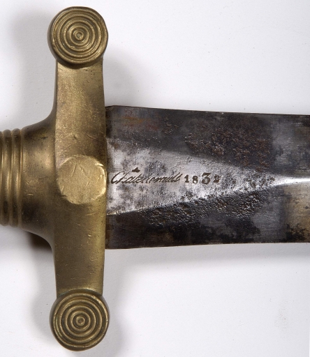 Les sabres étaient destinés aux troupes à pied. De modèle 1831, ils rappellent par leurs dispositions générales le modèle de sabre de l'artillerie à pied modèle 1816, mais leur poignée n'est pas en écaille, elle est à cordons, au nombre de 26, dont l'épaisseur va en s'amenuisant vers les parties supérieure et inférieure. Le pommeau est sans ornement, la croisière plus légère que celle du modèle précédent ne comporte plus de listel et se termine par deux quillons dits "à roulette".