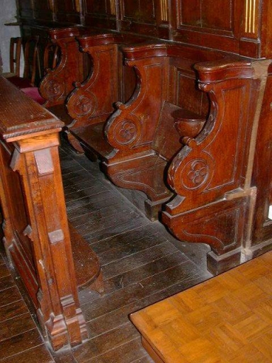 Décor de choeur : lambris de demi-revêtement, 2x6 stalles, 2 bancs de choeur,