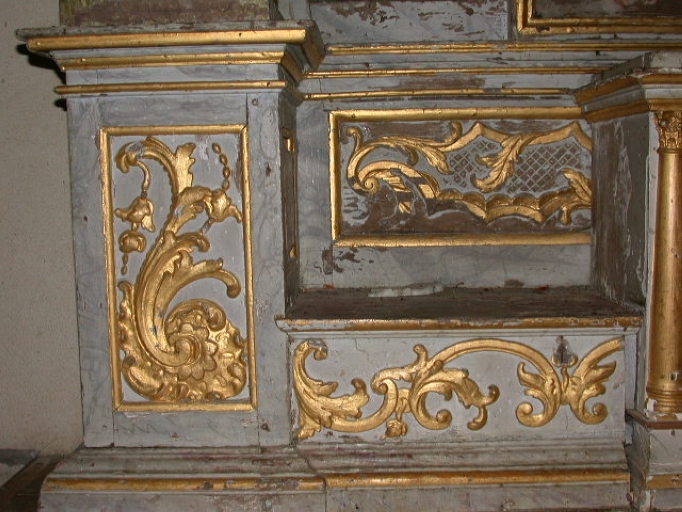 L'autel, le tabernacle et les degrés ont été remplacés. La peinture du retable est lacunaire.