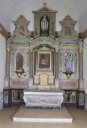 Inscription peinte sur la plinthe : ST FRANCOIS D'ASSISE.
