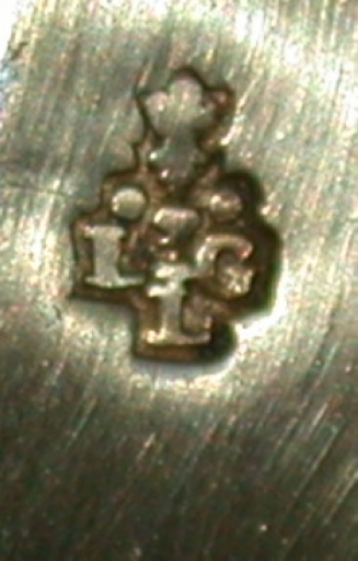 Poinçon sur la coupe. L (?) G/L le tout couronné, petite fleur de lys et 2 grains de remèdes. Tête d'aigle (1750). Lettres A et H couronnées (1744 ?). Poinçon d'ouvrage anciens en forme de lyre ?