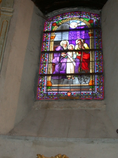 Ensemble des 2 verrières à personnages du choeur : Annonciation, Sainte Famille,