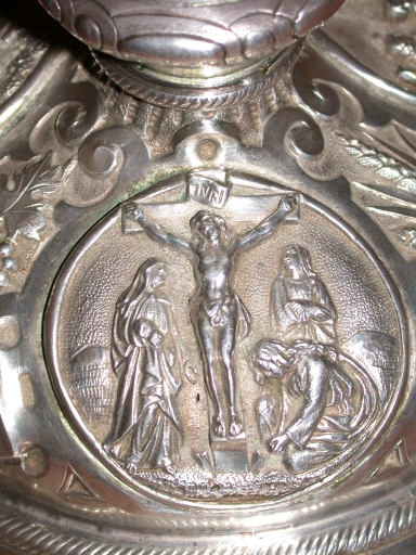 Le ciboire est l'oeuvre de l'orfèvre parisien Pierre-Henri Favier, actif entre 1846 et 1878 ; les médaillons sont signés : Montagny.