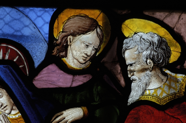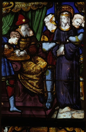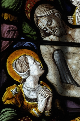 - verre transparent, gravé, peint, polychrome, émail, grisaille, jaune d'argent, sanguine