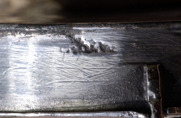 Le dessous de la custode a été renforcé par une mince plaque de métal.