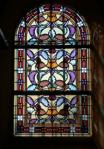 Verrière à personnages de la baie 00 : Baptême du Christ et 3 verrières décoratives des baies 2, 4, 6,