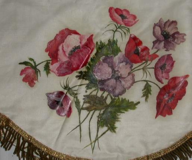 - soie, blanche satin, peint, polychrome, application sur textile