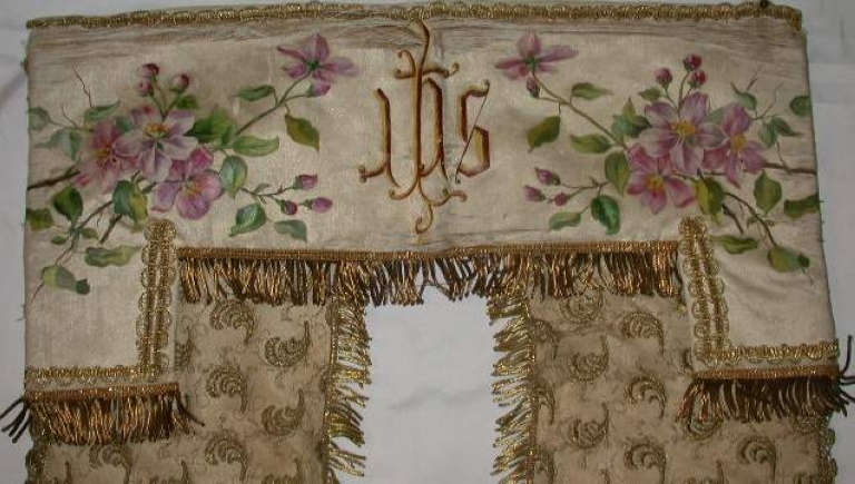 - soie, blanche satin, peint, polychrome, application sur textile