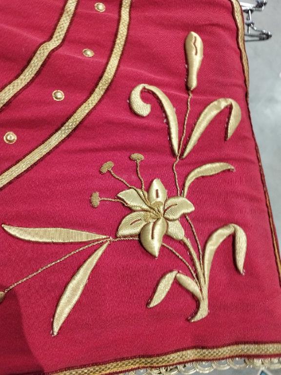 Cette bannière de procession était portée autrefois lors des Fête-Dieu. Elle ne l'est plus depuis une cinquantaine d'années. Elle est conservée dans l'armoire avec les vêtements liturgiques.