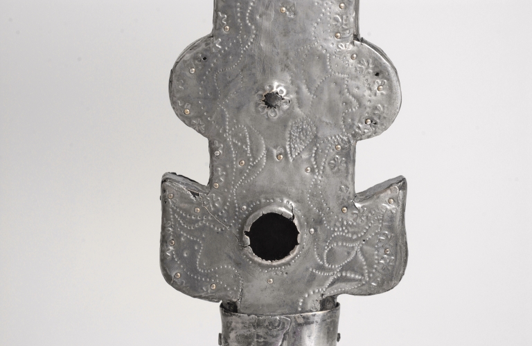 - cuivre, argenté, poinçonné motif en creux, poinçonné motif en relief, estampage