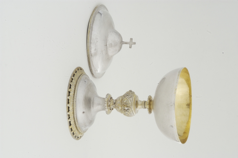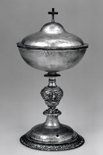 Ciboire réalisé en 1638 par l'orfèvre rennais Richard Drouais, et offert par le recteur Olivier Rebours à la paroisse de Mernel.
