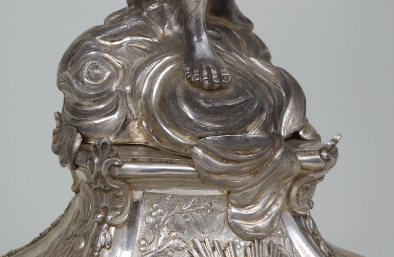 L´emploi ici, en 1786, d´un socle parfaitement rocaille de plan galbé, à pieds détachés et base chantournée, ne doit pas étonner et passer pour attardé : il est surtout synonyme de richesse. L´ange longiligne habillé à l´antique d´un drapé fluide, sa tête et sa chevelure traitées au naturel portent la marque d´un style nouveau, fortement inspiré par les oeuvres d´Edme Bouchardon qui donne au cours de la deuxième moitié du XVIIIe siècle pour la grande église de saint Sulpice de Paris, un ensemble de statues célèbres dès leur installation. La nuée qui entoure la lunule reprend le motif des têtes de chérubins décliné à l´envi sur les ostensoirs du XVIIIe siècle.