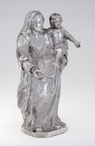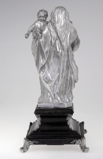 Légèrement hanchée et de trois-quart, la Vierge porte sur son bras gauche l'Enfant Jésus. Son bras droit tendu en avant et sa main entrouverte devaient tenir un chapelet : une confrérie du Rosaire ainsi qu´un tableau du XVIIIe siècle du même nom existent toujours d´ailleurs dans l´église. Elle n'est pas couronnée mais porte un voile, iconographie en rapport avec la relique contenue dans le socle de la statue : un fragment du voile de la Vierge. Une subtile déclinaison des aspects de surface entre le métal poli, presque étincelant du voile et du manteau de la Vierge, du revers des manches de la tunique, le ciselé au mat des vêtements et des chevelures et le rendu satiné des chairs que parcours un réseau de fines rayures à peine perceptibles à l'oeil nu, traduisent le métier d'un maître qui possède pleinement le savoir-faire de sa corporation.
