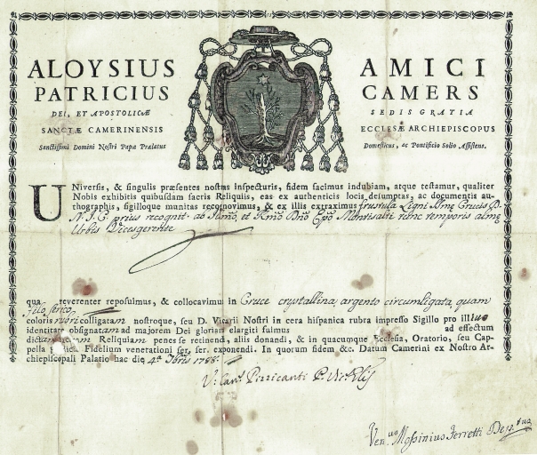 Croix-reliquaire de la Vraie-croix commandée en 1788 comme le précise le certificat d'authentique qui l'accompagne ainsi que le récit de la cérémonie de bénédiction du 2 mars 1788.