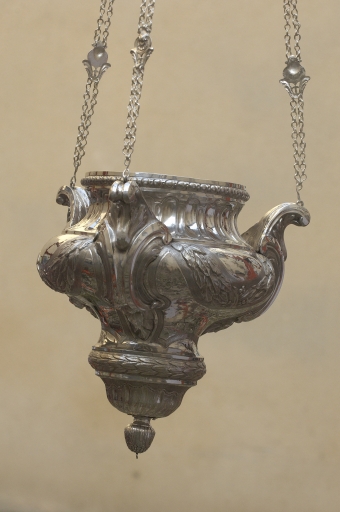 Lampe de sanctuaire réalisée par l'orfèvre rennais François-Gaspard-Jean Roysard et offerte en 1774 à l'église de Moutiers par le recteur Julien Verron.