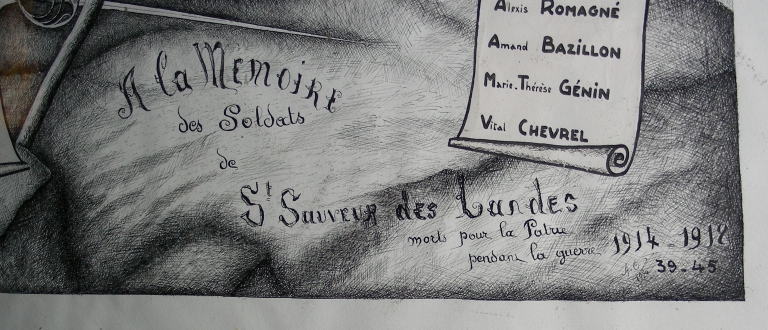 A LA MEMOIRE / DES SOLDATS / DE / ST SAUVEUR DES LANDES / morts pour la Patrie : pendans la guerre 1914-1918 / 38-45.