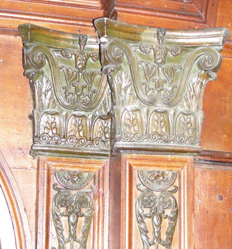 3 corps plein cintre, motifs à palmettes ; porte à bas relief représentant saint Pierre.