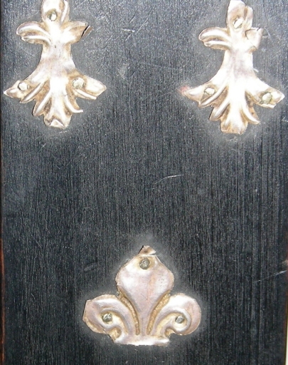 Les rayons de la partie supérieure sont remontés à l'envers. La petite fleur de lys posée au sommet de la croix est elle aussi à l'envers.
