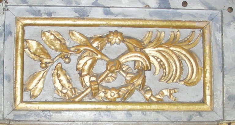 - bois, tourné, mouluré, peint, faux marbre, doré, mouluré, décor rapporté, décor en demi relief, décor en haut relief