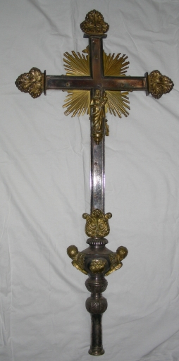Le décor du noeud de la croix de procession, à l'avers, est manquant.