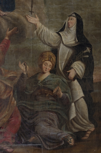 - Don du Rosaire à saint Dominique et sainte Catherine de Sienne, en présence du Christ (?) et de sainte Marie-Madeleine (incertitude)
