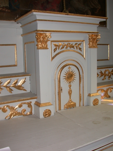 Autel remplacé au 19e siècle. Fin du 20e siècle : remplacement du dessus de l´autel et du tabernacle. Les gradins et l´autel sont mal raccordés à cause de l´ajout d´un degré d´autel.