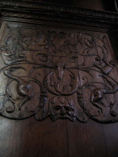 - chêne, mouluré, décor dans la masse, décor à fond en cuvette, décor en bas-relief, décor en demi-relief, décor en haut-relief, ajouré, tourné, vernis, ciré