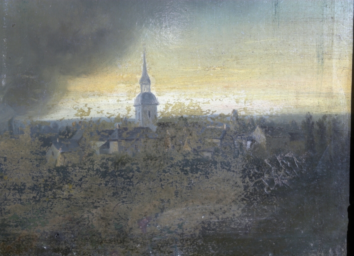 Ex-voto, bourg d'Orgères en fond.