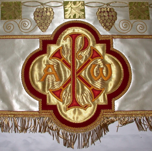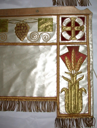 - soie, blanche satin, application sur textile, brodé, polychrome, adjonction d'éléments