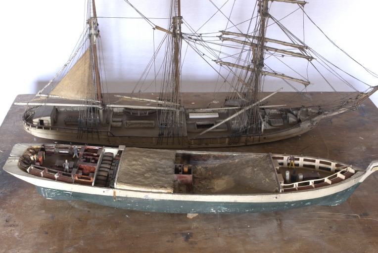 Dans l’église de Saint-Jouan-des-Guérets, une maquette ex-voto donne à lire l’aménagement du trois-mâts Charles-Édouard armé pour la grande pêche. Le pont amovible révèle l’emprise de la cale à poissons et du stock de sel, et laisse imaginer la vie des hommes pendant les mois de campagnes de pêche. Représentations naïves ou élaborées des navires auxquels on confiait sa vie, les maquettes votives peuvent être suspendues dans les églises pour protéger le bâtiment et son équipage, ou portées à l’épaule lors d’un pardon. Construit en 1924 par l’un des derniers chantiers malouins de terre-neuviers pour l’armateur Saint-Mleux, le Charles-Édouard est coulé en novembre 1940 par un sous-marin britannique.