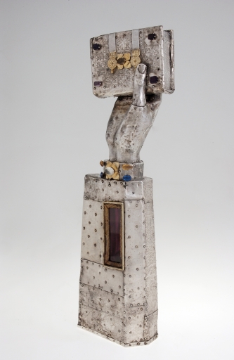 Les oeuvres conservées de la production de haute Bretagne ne peuvent donner qu´une image très partiellement fidèle de sa réalité. L´étude des anciens trésors montre plus encore qu´en basse Bretagne, la disparition de nombreuses pièces anciennes fondues dès les XVIIe et XVIIIe siècle sur l´ordre des chapitres cathédraux ou des abbayes, puis, lors des saisies révolutionnaires, la réquisition massive des objets volumineux ou lourds en raison de leur poids de métal précieux. L´influence des conseils paroissiaux, sans doute moins forte dans la partie orientale de la Bretagne qu´elle ne le fut dans sa partie occidentale où les fabriques sont jusqu´à la Révolution omniprésentes, explique aussi probablement la moindre quantité d´oeuvres conservées en haute Bretagne.Le corpus des oeuvres conservées, qui représente plus de trois cents pièces, a permis la sélection de quelque cent soixante douze objets estimés représentatifs de la production. Au regard du nombre impressionnant de pièces anciennes recensées en basse Bretagne, la famille plus réduite des oeuvres équivalentes pour la haute Bretagne a entraîné leur sélection et leur étude sans exclusion sur ce seul critère d´ancienneté : ce choix concerne les oeuvres antérieures au milieu du XVIIe siècle. Une douzaine de reliquaires, une quinzaine de calices, quatre ou cinq croix-reliquaires anciennes ainsi qu´une dizaine de croix de procession constituent cette première famille d´objets. D´emblée, par rapport aux exemples de basse Bretagne, le peu de reliquaires morphologiques frappe tout autant que l´absence de reliquaires en forme de chapelle.