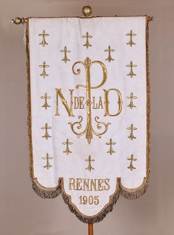 De nombreux pèlerinages sont organisés à la suite de la reconstruction de la chapelle Notre-Dame-de-la-Peinière par l'architecte Henri Mellet en 1900. Cette bannière est commandée en même temps qu'une croix de procession, à l'occasion du pèlerinage du 17 août 1905 de la ville de Rennes au sanctuaire de la Peinière. (POISSON, Henri (abbé), p.20)