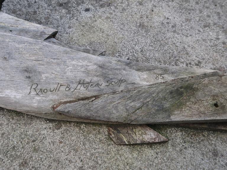 Bien que seul le nom de Jacques Raoult apparaisse dans le dossier d'agrément, une pièce de bois est "signée" : "Raoult et Huteau sculp 85"