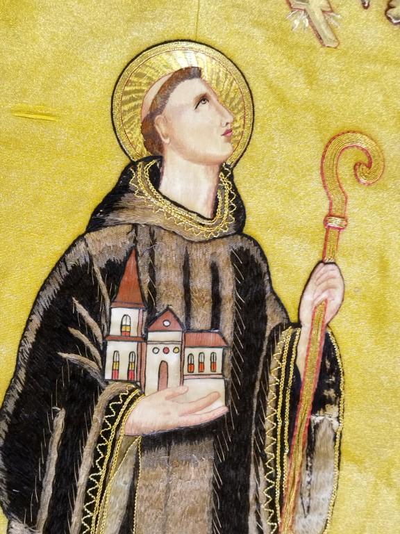 Bannière de procession : saint Convoïon, Immaculée Conception, abbatiale Saint-Sauveur (Redon), Abbaye de bénédictins Saint-Sauveur, 16 place Saint-Sauveur (Redon)