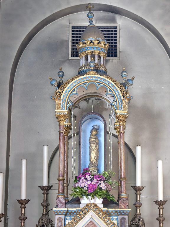 Il est composé de trois parties bien différentes : l'autel dont l'antependium est orné de trois arcades reposant sur des colonnettes doubles ; le tabernacle et le retable à gradins ; le ciborium miniature en partie supérieure destinée à accueillir une statue de la Vierge.