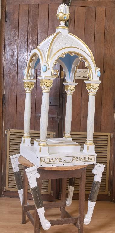 Les dimensions de ce brancard (qui fait aussi office de dais) indiquent qu'il a été créé pour la statue dite "miraculeuse" de Notre-Dame de la Peinière, et non la grand statue commandée en 1877.