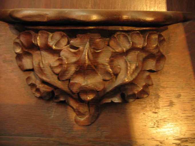 Appui-main et miséricorde provenant de l'abbaye cistercienne Notre-Dame de Buzay et remontés sur une stalle du 19e siècle lors de l'aménagement du chœur de l'église Saint-Symphorien.