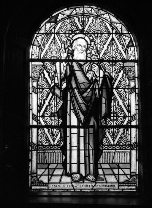Inscription verrière saint Pierre : DON DE MIR LE HELLAYE ET SON EPOUSE DE KERVEGANT ; inscription verrière saint Paul : DON DES FAMILLES ROBO VIDELO DU GREVEL. RESTAURATION MYBRUCHER F. SAN GEREITI, VERRIER RENNES ; inscription verrière saint Joseph : DON DE MME ET ME J. LE QUEMENER, INSTITUTEUR LIBRE ; inscription verrière saint Louis : DON DE LA FAMILLE VALAN DE CAVANNES ; inscription verrière apparition : DON DE DVE SUZANNE VALY ET JULIEN FRABOULET DE PENHOED ; inscription verrière Adoration de la Vierge : DON DES PAROISSIENS DE NEULLIAC ; inscription verrière saint évêque : DON DE LA FAMILLE JULIEN FRABOULET DU BOURG ; inscription verrière sainte Thérèse : DON DE LA FAMILLE JOSEPH VALY DE PENHOED MARO ; signature sur verrières saint Joseph, saint évêque et Baptême du Christ : S.A. MAUMEJEAN FRES PARIS HENDAYE.